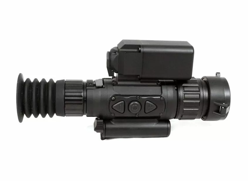 Современный дальномер, в котором излучатель и приемник встроены в один оптический канал, значительно расширило возможности прицела. За качественную тепловизионную картинку отвечает передовой ИК-сенсор с чувствительностью NETD ≤25 мК. Большой германиевый объектив на 50-ти миллиметровой линзе предоставит диапазон увеличения от 2 до 16х. Дальность обнаружения составляет 3000 метров. Прицел имеет техническую возможность для осуществления точных выстрелов на дальних дистанциях. Для этого предусмотрен большой набор прицельных сеток и встроенный 3D-акселерометр. Питание от двух элементов 18650 обеспечит до 12 часов автономной работы. Корпус прицела имеет класс защиты стандарта IP68 и готов к работе на «взрослых», снайперских калибрах при любой погоде в широком диапазоне рабочих температур.