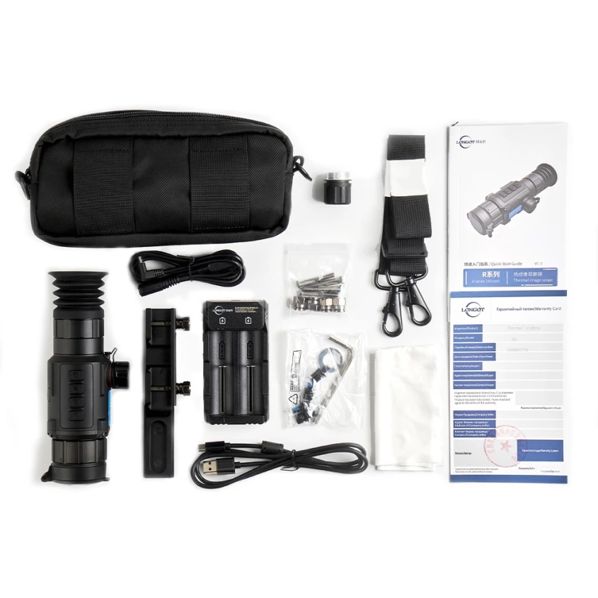 Тепловизионный прицел Longot R6 оснащён сенсором 256×192 px с шагом пикселя 12 µm и чувствительностью NETD ≤ 35 мК, что позволяет точно фиксировать даже слабые тепловые сигналы. Оптическое увеличение 2.5×–16× и дальность обнаружения до 900 метров делают его отличным инструментом для дальнобойной стрельбы. Прицел имеет лёгкий корпус, питание от аккумулятора 18500 (6 ч работы) и простую установку на оружие через стандартный крепёж Weaver.