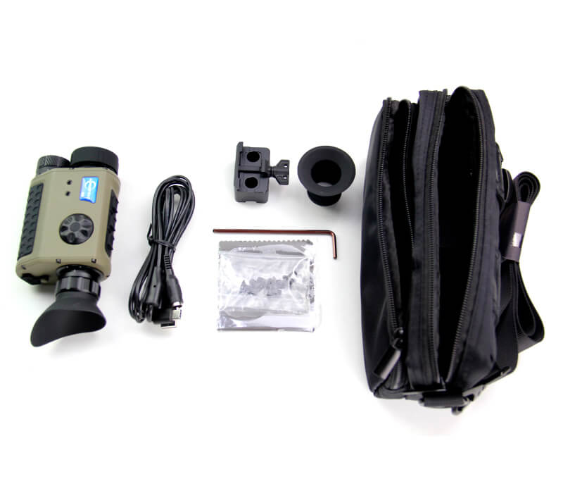 Оптика включает германиевый объектив диаметром 16 мм, который оптимально собирает тепловое излучение. Это позволяет использовать прибор в любых условиях, включая туман, дождь и ночную охоту.