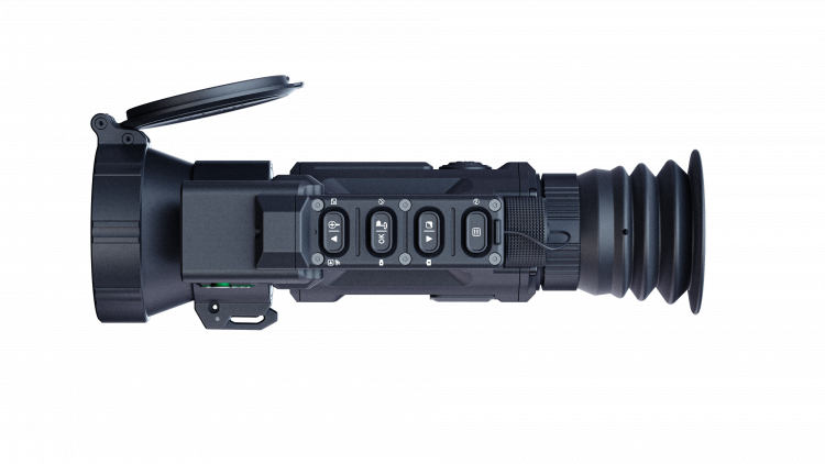 OLED-дисплей 1920×1080, шесть цветовых палитр, три сюжетных режима (город / лес / дождь), гибкая регулировка яркости и контраста и алгоритмы обработки помогают адаптировать изображение под условия охоты и личные предпочтения. Корпус из алюминиевого сплава защищён по IP67 и выдерживает отдачу до 6000 Дж. Питание — от одной аккумуляторной батареи 18650; поддерживается внешнее питание по USB-C.