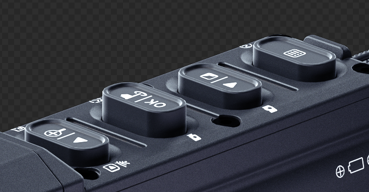 Панель управления выполнена с крупными выступающими кнопками разной высоты. Это ускоряет включение дальномера и помогает уверенно работать в перчатках и в темноте. Доступ к настройкам удобен как с правой, так и с левой стороны.