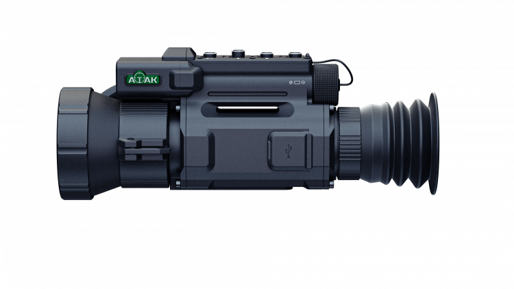 ATAK OT26-35LRF — тепловизионный прицел с матрицей VOx 640×512 (12 мкм) и чувствительностью NETD < 20 мК. Прибор работает в диапазоне 8–14 мкм, обеспечивает стабильную детализацию в тумане, на холоде и по слабоконтрастным целям. Базовое увеличение — 2,4×, цифровой зум — x1/x2/x4/x6/x8, есть режим «картинка-в-картинке» (PiP ×2). Встроенный лазерный дальномер измеряет дистанцию до 1000 м, а баллистический калькулятор выводит поправку прямо на сетке и в числовом виде.