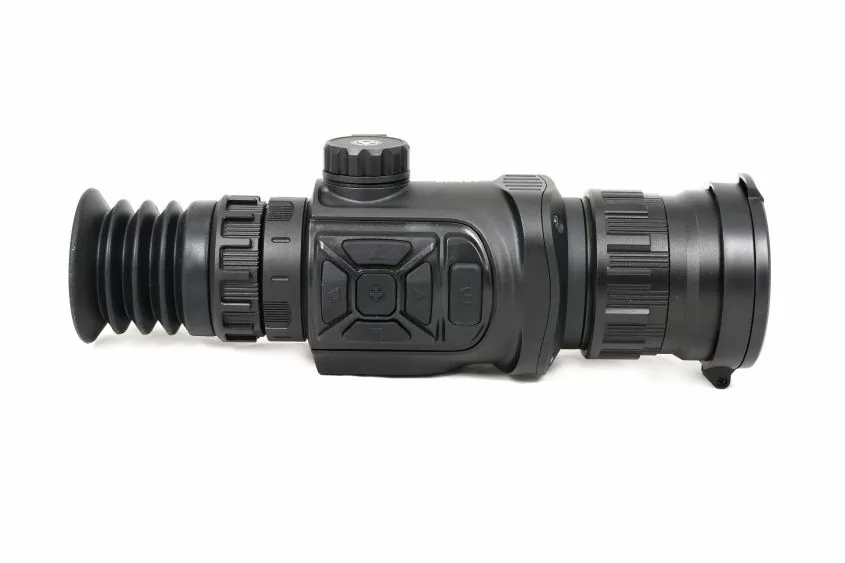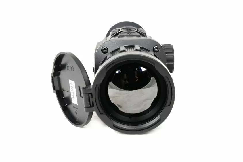 Основу оптической схемы составляет германиевый объектив 50 мм с относительным отверстием f/1.0, обеспечивающий высокую светосилу и точную фокусировку на разных дистанциях. Базовое увеличение начинается с 4,4х, а цифровой зум позволяет изменять кратность вплоть до 35,2х благодаря диапазону 1х–8х. На минимальной кратности угол обзора FOV равен 5,2х3,9°, что предоставляет для видимости участок пространства размером 9,1х6,8 м на расстоянии 100 метров . Этого достаточно для уверенного сопровождения движущихся целей. Фокусировка осуществляется вращением кольца на объективе.