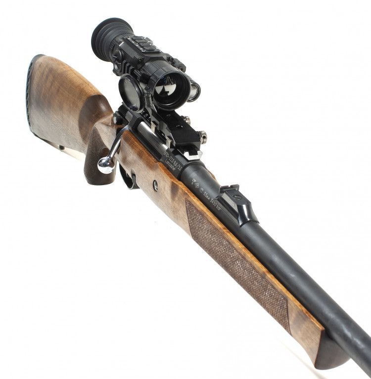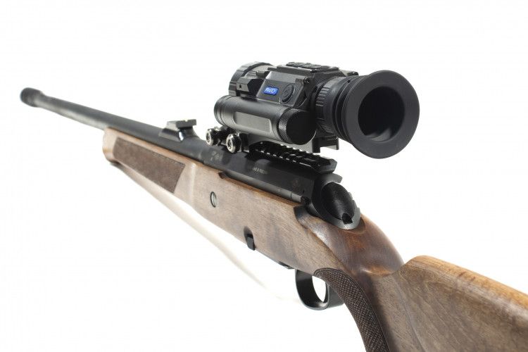 Компактный тепловизионный прицел с лазерным дальномером. Даёт чёткое изображение днём и ночью, быстро измеряет расстояние и помогает точно стрелять на ближних и средних дистанциях.