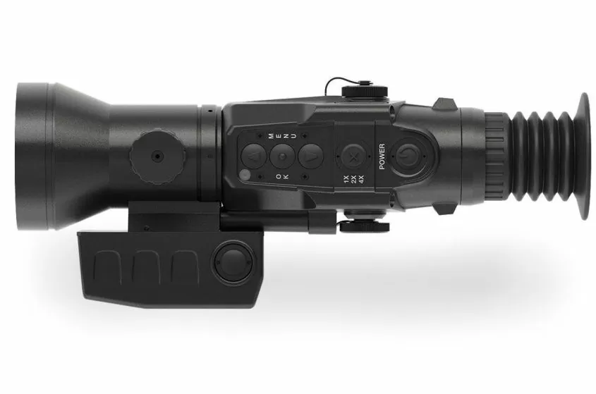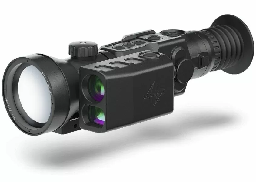 Профи-версия тепловизионного прицела с встроенным лазерным дальномером до 2000 м. Работает в любых погодных условиях — дождь, туман, полная темнота — и обеспечивает чёткое изображение на дальних дистанциях.