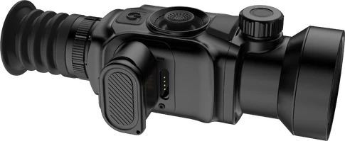 Прицел оснащён AMOLED-дисплеем 1024×768. Частота обновления 50 Гц делает картинку плавной и комфортной для глаз при длительном использовании. Есть Wi-Fi, запись фото и видео, встроенная память до 64 ГБ и выбор цветовых палитр.