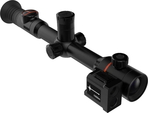 Модель оснащена встроенным лазерным дальномером, который измеряет дистанцию до цели примерно до 1000 м. Это помогает точнее работать на открытых участках местности и быстрее принимать решение при стрельбе. Дальность обнаружения крупного объекта достигает почти четырёх километров.