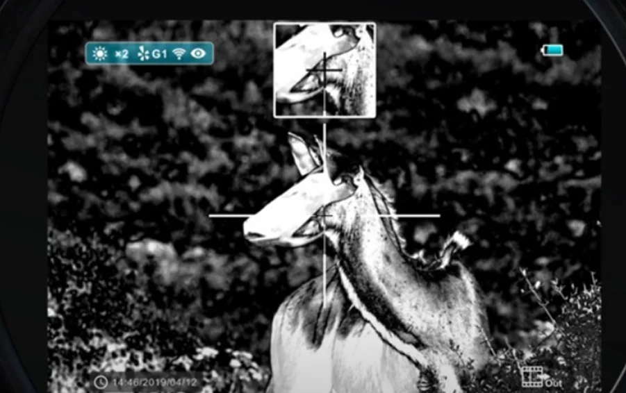 При включении функции PIP на экране отображается дополнительное окно небольшого размера с увеличенным центральным участком изображения. Одним из преимуществ этой функции является наличие перекрестия сетки на увеличенном изображении. Это позволяет более точно навести оружие в убойную зону. Небольшие размеры окна не препятствуют визуальному контролю за обстановкой, что дает возможность вести прицельный огонь даже по медленно движущимся целям.