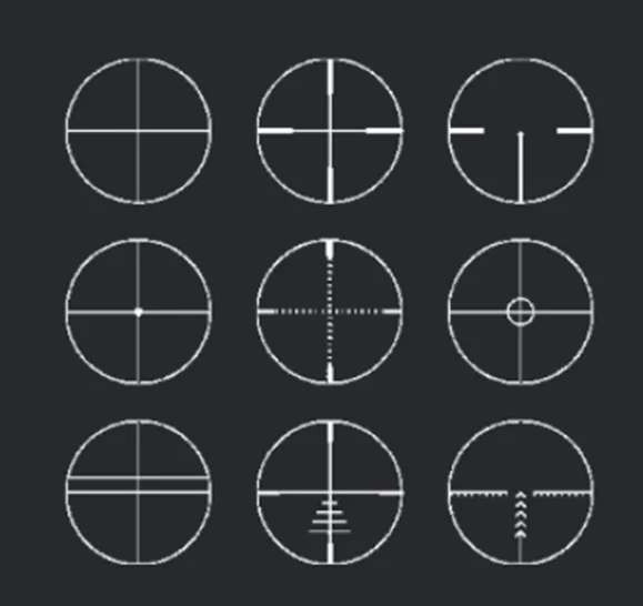 Пользователям доступен выбор из девяти различных прицельных сеток, при желании можно изменять их цветовое оформление. В набор входят как простые охотничьи сетки, так и тактические, предназначенные для стрельбы по BDC меткам или выносом точки прицеливания.