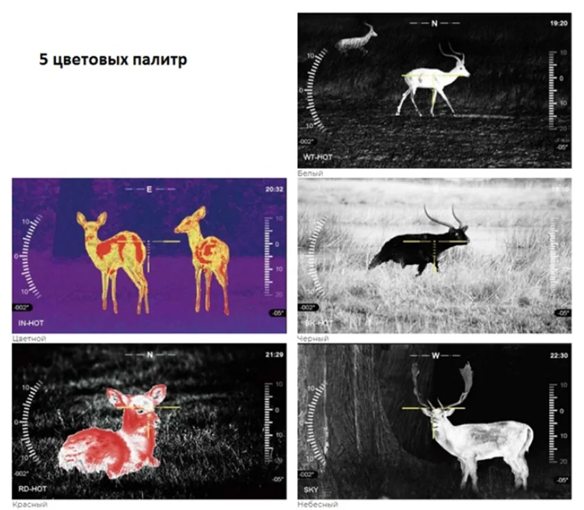 Пользователи PARD SA-45 могут выбрать одну из пяти доступных цветовых схем отображения. Каждая из палитр имеет свои уникальные преимущества и подходит для различных условий наблюдения и типов выполняемых задач.