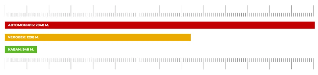 Дальность обнаружения объектов: (1,8х0,5м) — 1298 м, (2,3х2,3м) – 2048 м.