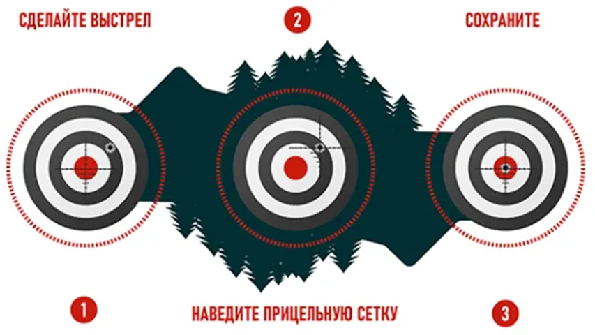 Пользователям предложен большой набор электронных прицельных сеток. Для ближних дистанций подходят стандартные охотничьи варианты, в то время как тактические сетки, типа «Мил-Дот» и его расширенные аналоги, актуальны для выстрелов на средних и дальних дистанциях. Кроме того, доступна функция пристрелки одним выстрелом. Подробности методики описаны в инструкции по эксплуатации.