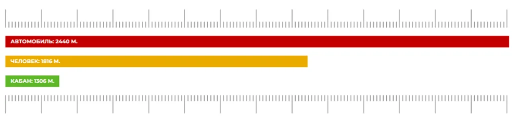 Дальность обнаружения объектов: (1,8х0,5м) — 1816 м, (2,3х2,3м) – 2440 м.