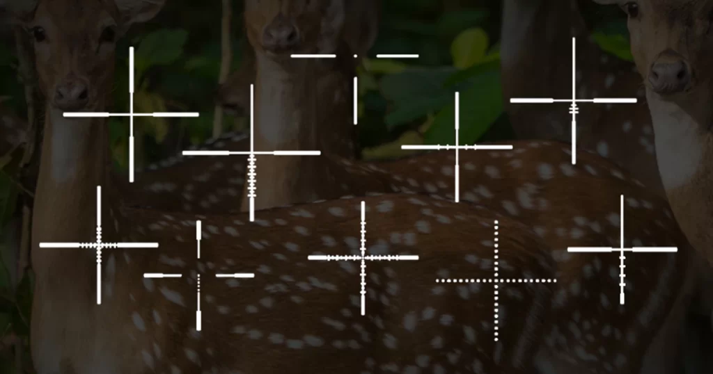 Десять типов прицельных сеток, есть баллистические масштабируемые варианты.