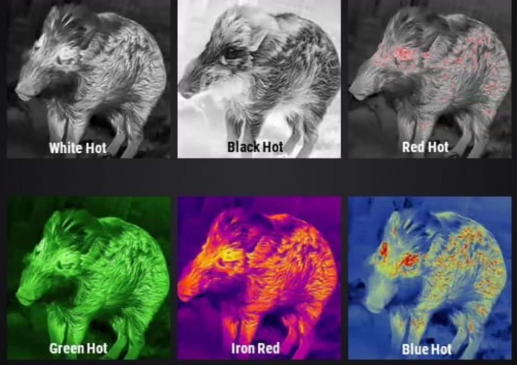 Шесть цветовых палитр (White Hot, Black Hot, adjustable Red Hot , Green Hot, Iron Red, Blue Hot).