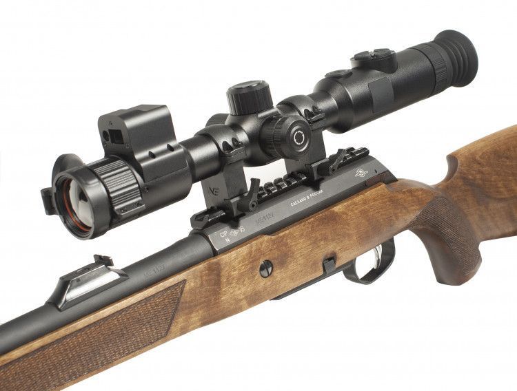 Под любой калибр и любую погоду. Посадочный диаметр 30 мм. У тепловизора TC23-635-LRF форм-фактор как у оптического прицела, внутри боковых фальш-барабанов скрыт батарейный отсек, а верхний маховик — кнопка включения. Для установки на оружие понадобятся моноблок или кольца, а манипулировать с настройками одинаково удобно как левой, так и правой рукой. Сама конструкция суперпрочная, сделана из цельной алюминиевой заготовки и защищена от пыли и осадков по классу IP67. По данным производителя, прицел выдержит отдачу калибра .375 H&H (до 1000G), 30-градусный мороз и случайное падение в воду (до 1 м, до 10 мин). Также вынос выходного зрачка на 48 мм более комфортен, чем базовые 30-35 мм у классических версий.