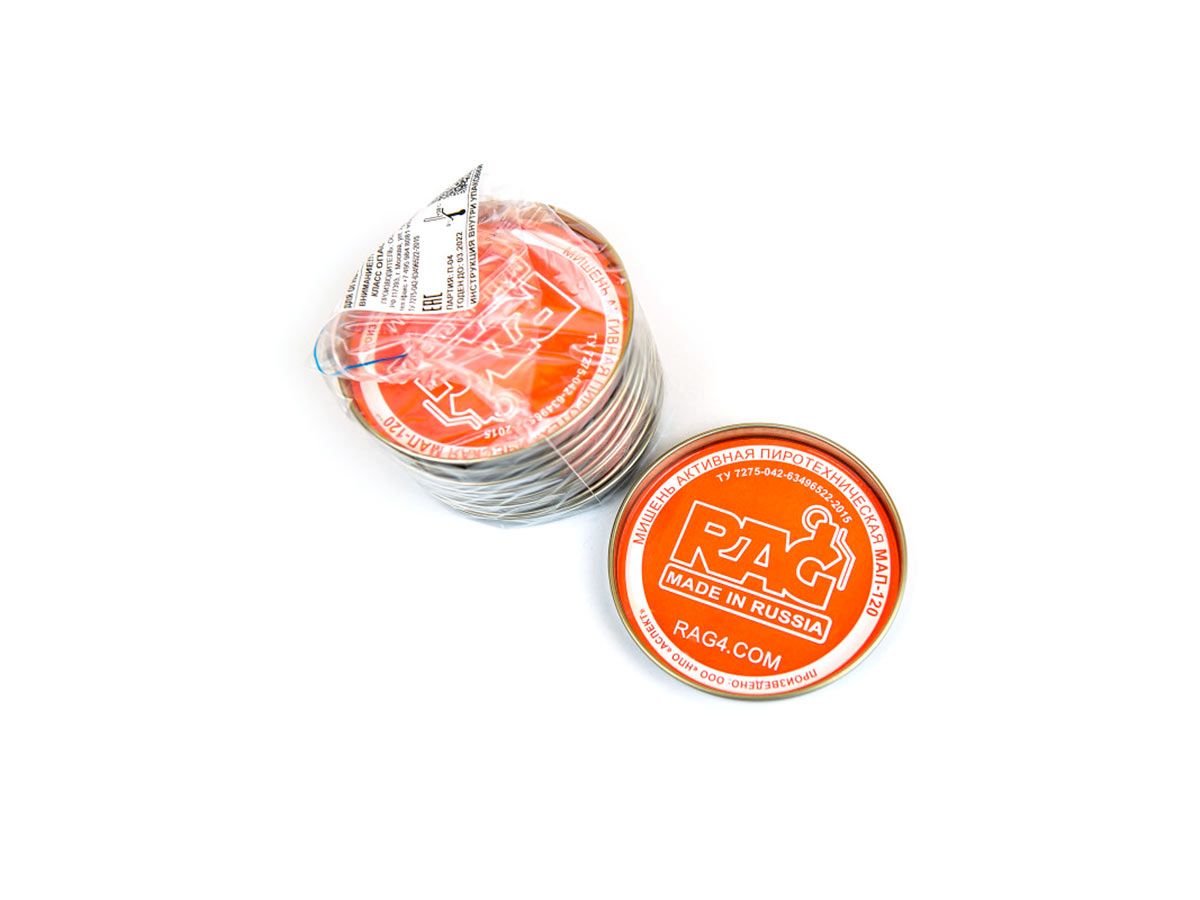Мишень активная RAG МАП-120, 10 штукМишень активная пиротехническая RAG МАП-120 – взрывная мишень, используется для пулевой стрельбы из огнестрельного, в том числе ОООП, оружия.Объёмный по массе пиротехнический элемент RAG МАП-120, при попадании пули срабатывает со световой, звуковой и дымовыми эффектами, визуализируя попадание в мишень невооружённым глазом.RAG МАП-120 применяется для учебной практики высокоточной стрельбы для облегчённого визуального контроля эффективности стрельбы, а также для развлекательной и обучающей стрельбы.Стальная основа мишени и клейкая лента нанесённая на обратной стороне мишени позволяют комфортно зафиксировать мишень на жёсткой ровной основе, т.е. приклеить к бумажной мишени или к стенду.Продажа осуществляется упаковками по 10 штук.Технические особенности RAG MAP-120:Класс опасности (ТР ТС): I, (1.4S) OOH № 0110Диаметр: 120 ммТолщина: 10 ммМасса: 43г (+- 2,0г)Инициатор воспламенения: механический (при попадании)Дистанция визуального контроля: до 500 мМатериал корпуса: стальАкустическое давление: 80 (+- 10 дБ) на 5 мУсловия хранения и эксплуатации: 3 года (-15°С...+30ºС)Изделие сертифицировано на соответствие ТР ТС (ЕАС)