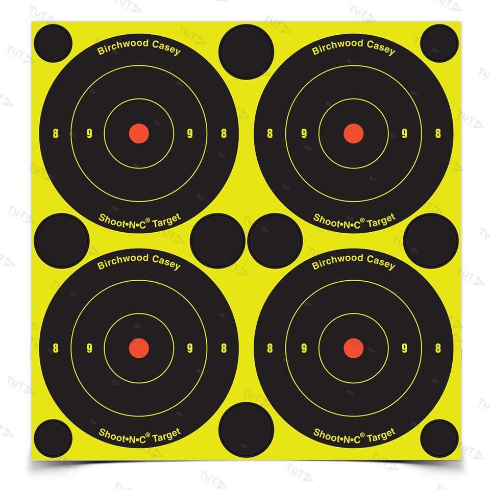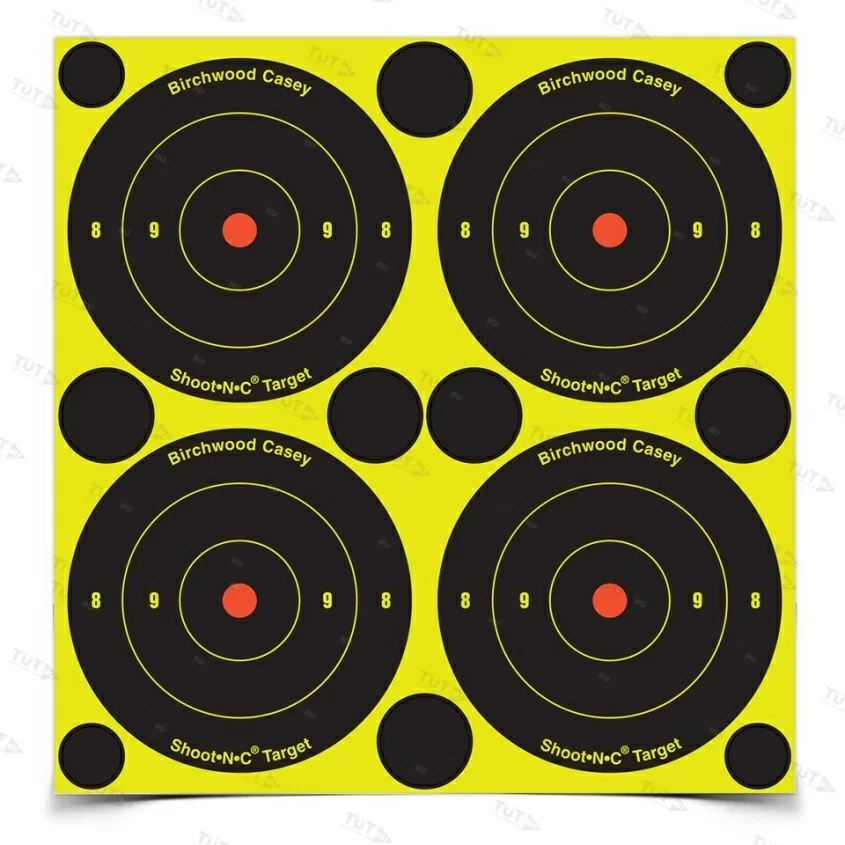 Shoot N C Мишень бумажная с проявлением попадания, с каждым листом по 10 востанавливающих наклеек, 48шт в упаковке, диаметр круга 80мм. Не требует специальных условий хранения. Производитель: Birchwood Casey, LLC 7887 Fuller Road, Suite 100 Eden Prairie, MN 55344 Произведено в США.