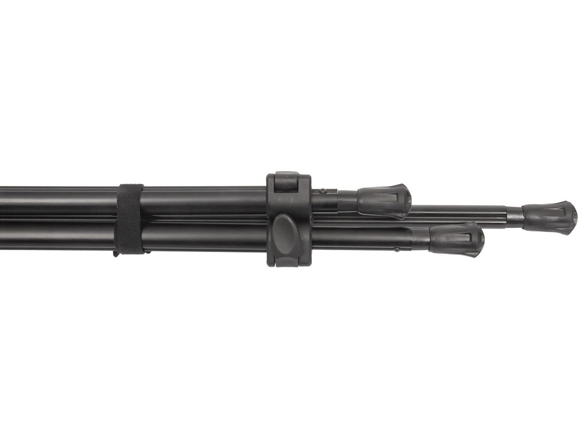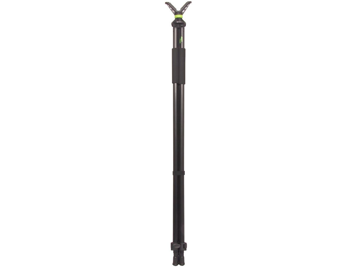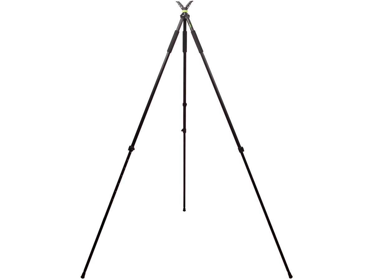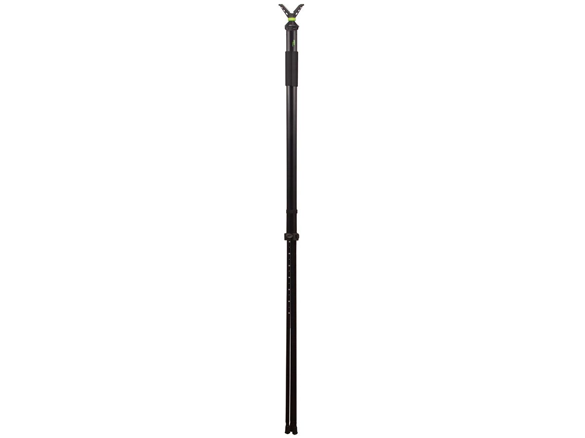 Опора ShotTime телескопическая, трипод, 103-180 см, V-образный упор с поворотом на 360°Телескопическая опора-трипод ShotTime предназначена для повышения точности стрельбы на охоте. Позволяет устранить дрожание рук и совершить точный выстрел. Помимо стрельбы трипод можно использовать для фотографирования пейзажей и объектов животного мира. Изящная и лёгкая опора весит всего 870 г, поэтому вы с лёгкостью можете взять её с собой на самую длительную охоту.Ноги опоры изготовлены из прочного и лёгкого алюминиевого сплава. На ногах нанесена разметка от 150 до 180 см. и установлены неопреновые накладки для удобства удержания. Надёжные пластиковые клипсовые замки в закрытом виде практически не выступают за габариты опоры. Эргономичная форма замков позволяет открывать и закрывать их одной рукой. По сравнению с цанговыми замками, клипсовые – самый быстрый способ фиксации и визуальный контроль их закрытия.Откручивающиеся резиновые наконечники оснований ног не позволяют опоре проваливаться в рыхлую почву и проскальзывать на твёрдой поверхности. При откручивании наконечников на ногах остаются прочные стальные шипы, с помощью которых можно зафиксировать опору на льду и других скользких поверхностях.Опора ShotTime имеет стандартный штативный винт 1/4" (1/4 дюйма), позволяющий устанавливать не только комплектный адаптер-держатель, различные штативные головки, дальномеры и монокуляры, но и большинство современных фотоаппаратов и видеокамер.Трипод позволяет стрелять, как стоя, так и сидя. Ребристая поверхность V-образного упора (адаптера-держателя) надёжно удерживает цевьё оружия. Адаптер может поворачиваться по горизонтали на 360°.Для удобства переноски и хранения предусмотрен прочный съёмный хомут с липучкой велкро, фиксирующий ноги вместе.Характеристики опоры:Тип: трипод (3 ноги)Количество секций: 2Общая длина в сложенном состоянии: 103 смОбщая длина в разложенном состоянии: 180 смКрепление адаптера к опоре: 1/4"Угол поворота адаптера: 360°Материал ног: алюминийМатериал наконечников: резина/стальМатериал упора: пластик/резинаЦвет: чёрныйМасса: 870 г