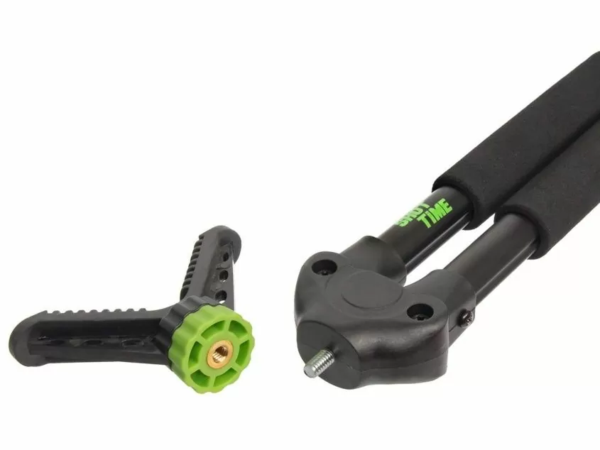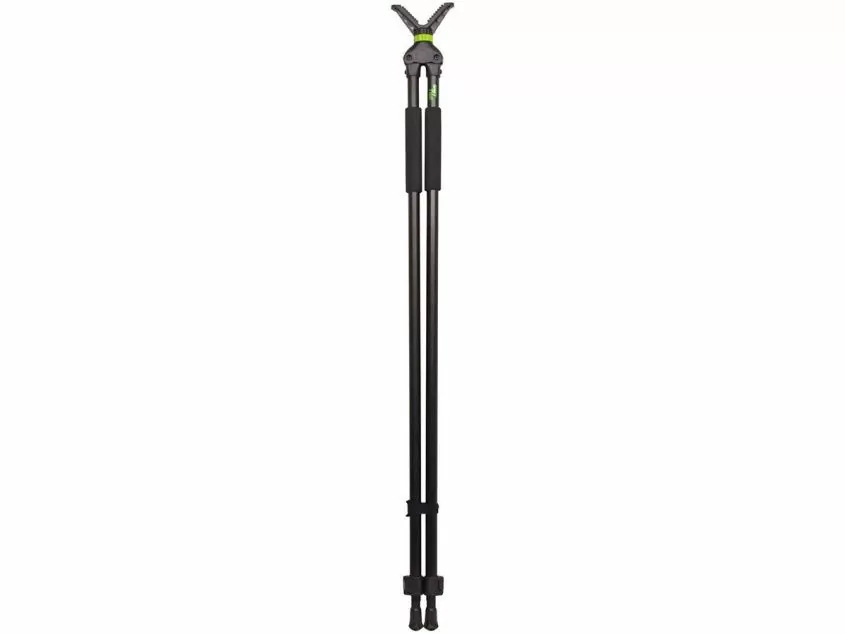 Опора ShotTime телескопическая, бипод, 103-180 см, V-образный упор с поворотом на 360°Телескопическая опора-бипод ShotTime предназначена для повышения точности стрельбы на охоте. Позволяет устранить дрожание рук и совершить точный выстрел. Помимо стрельбы бипод можно использовать для фотографирования пейзажей и объектов животного мира. Изящная и лёгкая опора весит всего 600 г, поэтому вы с лёгкостью можете взять её с собой на самую длительную охоту.Ноги опоры изготовлены из прочного и лёгкого алюминиевого сплава. На обеих ногах нанесена разметка от 150 до 180 см. и установлены неопреновые накладки для удобства удержания. Надёжные пластиковые клипсовые замки в закрытом виде практически не выступают за габариты опоры. Эргономичная форма замков позволяет открывать и закрывать их одной рукой. По сравнению с цанговыми замками, клипсовые – самый быстрый способ фиксации и визуальный контроль их закрытия.Откручивающиеся резиновые наконечники оснований ног не позволяют опоре проваливаться в рыхлую почву и проскальзывать на твёрдой поверхности. При откручивании наконечников на ногах остаются прочные стальные шипы, с помощью которых можно зафиксировать опору на льду и других скользких поверхностях.Опора ShotTime имеет стандартный штативный винт 1/4" (1/4 дюйма), позволяющий устанавливать не только комплектный адаптер-держатель, различные штативные головки, дальномеры и монокуляры, но и большинство современных фотоаппаратов и видеокамер.Бипод позволяет стрелять, как стоя, так и сидя. Ребристая поверхность V-образного упора (адаптера-держателя) надёжно удерживает цевьё оружия. Адаптер может поворачиваться по горизонтали на 360°.Для удобства переноски и хранения предусмотрен прочный съёмный хомут с липучкой велкро, фиксирующий ноги вместе.Характеристики опоры:Тип: бипод (2 ноги)Количество секций: 2Общая длина в сложенном состоянии: 103 смОбщая длина в разложенном состоянии: 180 смКрепление адаптера к опоре: 1/4"Угол поворота адаптера: 360°Материал ног: алюминийМатериал наконечников: резина/стальМатериал упора: пластик/резинаЦвет: чёрныйМасса: 600 г