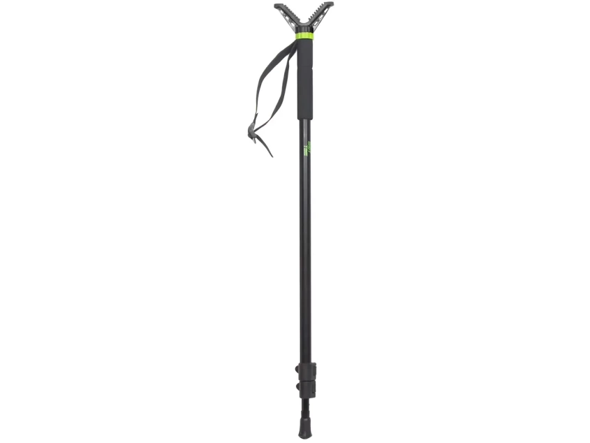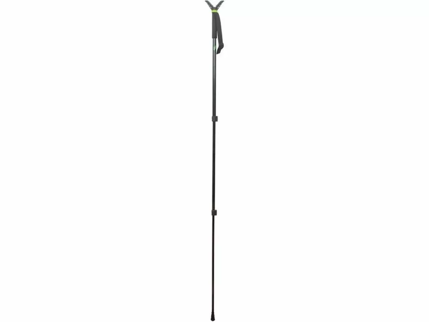 Опора ShotTime телескопическая, монопод, 82-175 см, V-образный упор с поворотом на 360°Телескопическая опора-монопод ShotTime предназначена для повышения точности стрельбы на охоте. Позволяет устранить дрожание рук и совершить точный выстрел. Помимо стрельбы монопод можно использовать для фотографирования пейзажей и объектов животного мира. Изящная и лёгкая опора весит всего 300 г, поэтому вы с лёгкостью можете взять её с собой на самую длительную охоту.Нога опоры изготовлена из прочного и лёгкого алюминиевого сплава и состоит из трёх секций. На ноге установлена неопреновая накладка для удобства удержания и нанесена шкала изменения высоты. Надёжные пластиковые клипсовые замки в закрытом виде практически не выступают за габариты опоры. Эргономичная форма замков позволяет открывать и закрывать их одной рукой. По сравнению с цанговыми замками, клипсовые – самый быстрый способ фиксации и визуальный контроль их закрытия.Откручивающийся резиновый наконечник основания ноги не позволяет опоре проваливаться в рыхлую почву и проскальзывать на твёрдой поверхности. При откручивании наконечника на ноге остаётся прочный стальной шип, с помощью которого можно зафиксировать опору на льду и других скользких поверхностях.Опора ShotTime имеет стандартный штативный винт 1/4" (1/4 дюйма), позволяющий устанавливать не только комплектный адаптер-держатель, различные штативные головки, дальномеры и монокуляры, но и большинство современных фотоаппаратов и видеокамер.Монопод позволяет стрелять, как стоя, так и сидя. Ребристая поверхность V-образного упора (адаптера-держателя) надёжно удерживает цевьё оружия. Адаптер может поворачиваться по горизонтали на 360°.Для удобства переноски и удержания предусмотрен прочный нейлоновый темляк шириной 25 мм с возможностью регулировки длины.Характеристики опоры:Тип: монопод (1 нога)Количество секций: 3Общая длина в сложенном состоянии: 82 смОбщая длина в разложенном состоянии: 175 смКрепление адаптера к опоре: 1/4"Угол поворота адаптера: 360°Материал ноги: алюминийМатериал наконечника: резина/стальМатериал упора: пластик/резинаЦвет: чёрныйМасса: 300 г