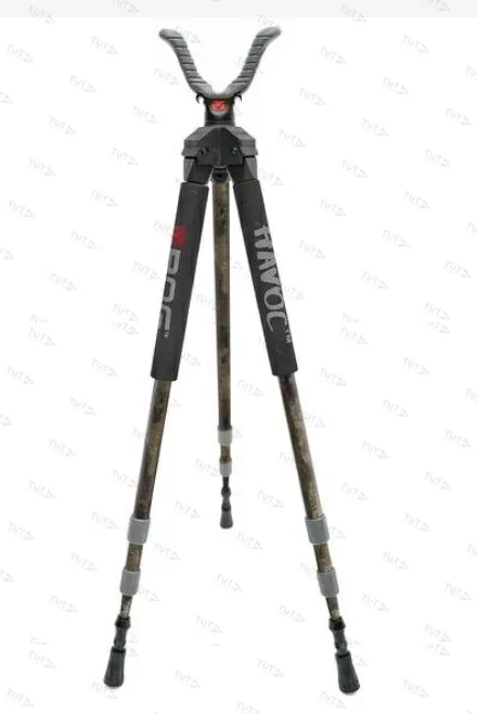 Особенности платформы-трипода Havoc Tripod:Портативная стрелковая платформа включает три 4-х секционные раздвижные опоры из прочного алюминия, оснащенные поворотными замками.Возможность быстрого развертывания и фиксации раздвинутых секций поворотом.Диапазон раздвижки секций: от 457 мм до 1727мм (18\"- 68\").Параметры раздвижки позволяют стрелку выбрать положение для стрельбы – сидя, с колена или стоя.Удобство наблюдения и стрельбы в засадах.Оснащение универсальной запатентованной подставкой-вилкой для стрельбы с гибкой, но прочной резиновой прокладкой, предотвращающей соскальзывание и повреждение ложи оружия.Панорамный обзор 360° при стрельбе.Облицовочные рукоятки из пеноматериала в верхней части опор – удобны при развертывании, выполнении операций раздвижки, фиксации секций, свертывания трипода, помогают контролировать фиксацию трипода при сканировании цели или стабилизации оружия для выстрела.Резиновые наконечники опор поглощают удары и вибрации, предотвращают скольжение на любых, в том числе наклонных каменистых, бугристых, гладких и влажных поверхностях.