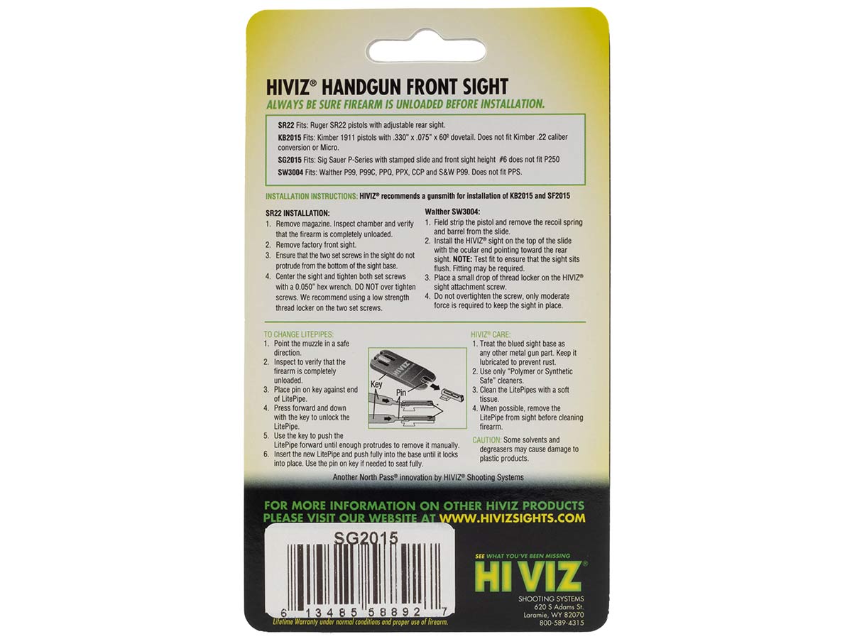 HiViz пистолетная мушка SG2015 для Sig Sauer.