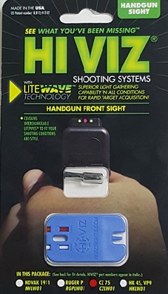 HiViz пистолетная мушка CZLW01 для CZ75/85/97/P-01/83, 3 цвета волкон (красн, белый, зелен.).