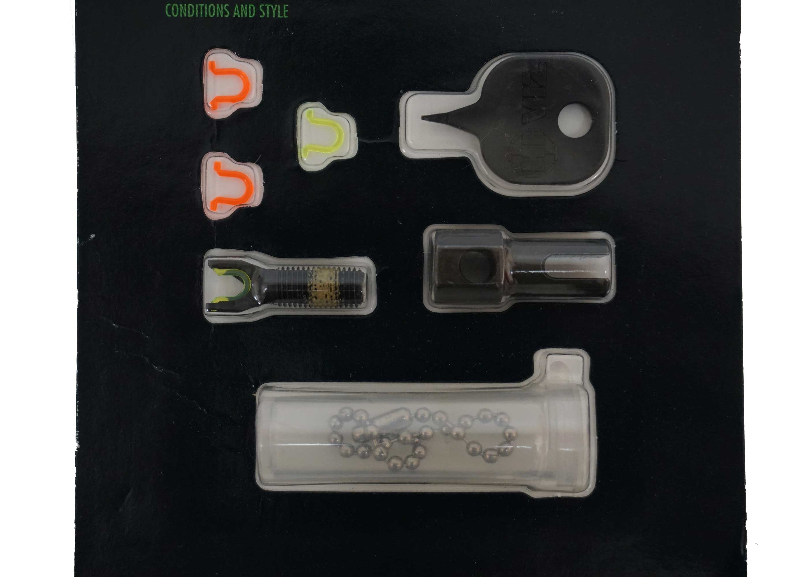В комплект входят 4 оптоволокна: 2-красных и 2-зелёных. Ключ для смены оптоволокон, Кейс для хранения.