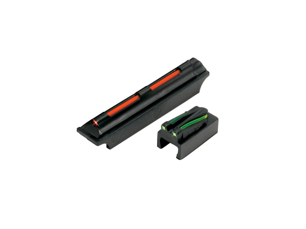 Оптоволокно мушки красного цвета. Оптоволокна целика зеленого цвета. Диаметр оптоволоконной вставки мушки 1,5 мм (.060") мм. Диаметры оптоволоконных вставок целика 0,8 мм (.035") мм. Основание выполнено из прочного нейлона. Вам просто нужно выстроить в линию три контрастных точки. Такая система особенно хороша при стрельбе пулей или картечью. Имеет максимально низкую посадку. Мушка быстро и легко устанавливается.