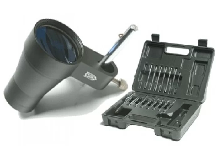 Данное изделие предназначено для быстрой и точной пристрелки оптических прицелов. В комплекте идут 17 насадок, рассчитанных под следующие калибры:Список калибров:1:.177 (4,5 mm)2:.20 (5,08 mm)3:.22 (5,6 mm)4:6 mm5:.25 (6,35 mm)6:6,5 mm7:.27 (6,85 mm)8:7 mm9:.30 (7,62 mm)10:.32 (8,13 mm)11:.338 (8,58 mm)12:.35 (8,89 mm)13:.375 (9,53 mm)14:.44 (11,18 mm)15:.45 (11,43 mm)16:.50 (12,7 mm)17:12, 16, 20 калибры (универсальная насадка)ПРИНЦИП РАБОТЫ::У данного устройства имеются линза, через которую виднеется сетка для пристрелки. Устройство устанавливается в ствол оружия при помощи насадок, идущих в комплекте (17 шт). Изделие плотно фиксируется в стволе. Таким образом, центр сетки объектива должен соответствовать попаданию пули в эту область. Через оптический прицел должно быть видно данную сетку. Таким образом происходит пристрелка оружия.ОПИСАНИЕ:Данное устройство для холодной пристрелки оптических прицелов идёт в комплекте с пластиковым ящиком с ручкой для переноски и двумя защелками.Насадка для 12, 16 и 20 калибров регулируется по диаметру при помощи торцевого винта.Установка:Для правильной установки прицела следуйте указаниям изготовителей вашего прицела и кронштейна. Мы полагаем, что вы правильно установили свой прицел, и не предоставляем на это гарантий. Если у вас нет такой уверенности, мы настоятельно рекомендуем вам проконсультироваться с оружейным специалистом или с продавцом, у которого вы приобрели прицел или кронштейн.1. Выберите втулку в ствол, которая подходит по калибру вашего ствола. Каждая втулка имеет четкую маркировку. Вставьте втулку концом, на котором есть медная бородка, в пластиковый корпус прибора так, чтобы эта бородка вошла в паз в отверстии. Затем рукой закрутите прижимной винт, чтобы зафиксировать втулку относительно корпуса прибора.2. Вставьте втулку с закрепленным на ней прибором в ствол оружия. Если она не входит в канал ствола, проверьте, подходящую ли для вашего калибра вставку вы выбрали.3. Поверните втулку в канале ствола так, чтобы прибор оказался выровнен с вертикалью, проходящей через ствол.4. Если вы теперь загляните в прицел, то должны четко увидеть через него 2 сетки. Одна сетка самого оптического прицела, а вторая сетка оптической пристрелки. Вам нужно только совместить центры сеток между собой, и ось оптического прицела совпадет с осью канала ствола. Если координатная сетка видна расплывчато, сфокусируйте ваш прицел. Настройте изображение координатной сетки, следуя указаниям инструкции к вашему прицелу.5. Снимите защитные крышки с барабанов ввода поправок. Следуя указаниям инструкции к вашему прицелу, введите необходимые горизонтальные и вертикальные поправки, чтобы прицельная сетка оказалась по центру координатной сетки прибора. Добившись этого, установите защитные крышки обратно на барабаны и извлеките втулку с прибором из ствола.6. Вы выполнили предварительную «холодную» пристрелку вашего оружия!После предварительной «холодной» пристрелки обязательно надо выполнить «горячую» пристрелку в тире или в полевых условиях. Использовать оружие следует лишь после правильно выполненной «горячей» пристрелки.