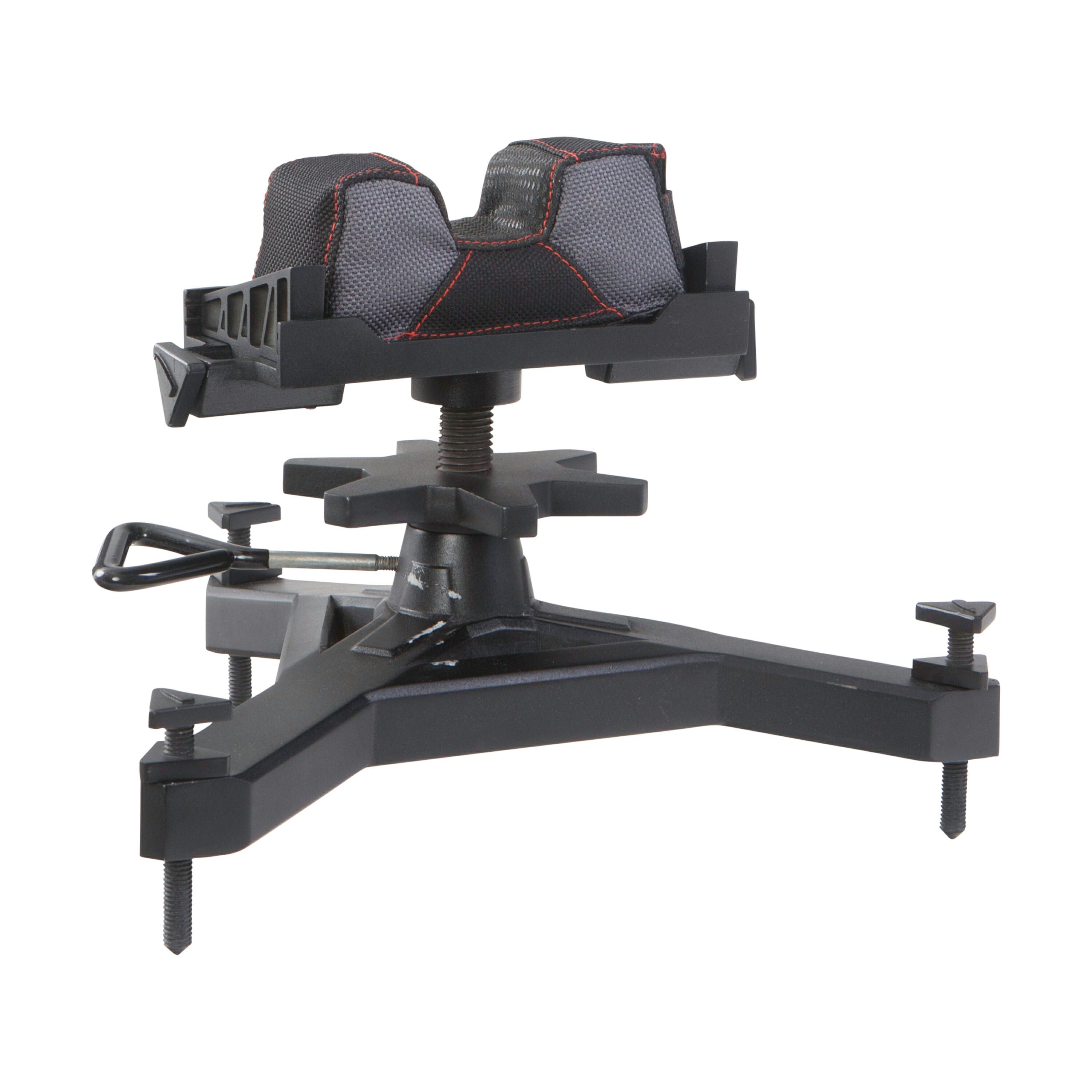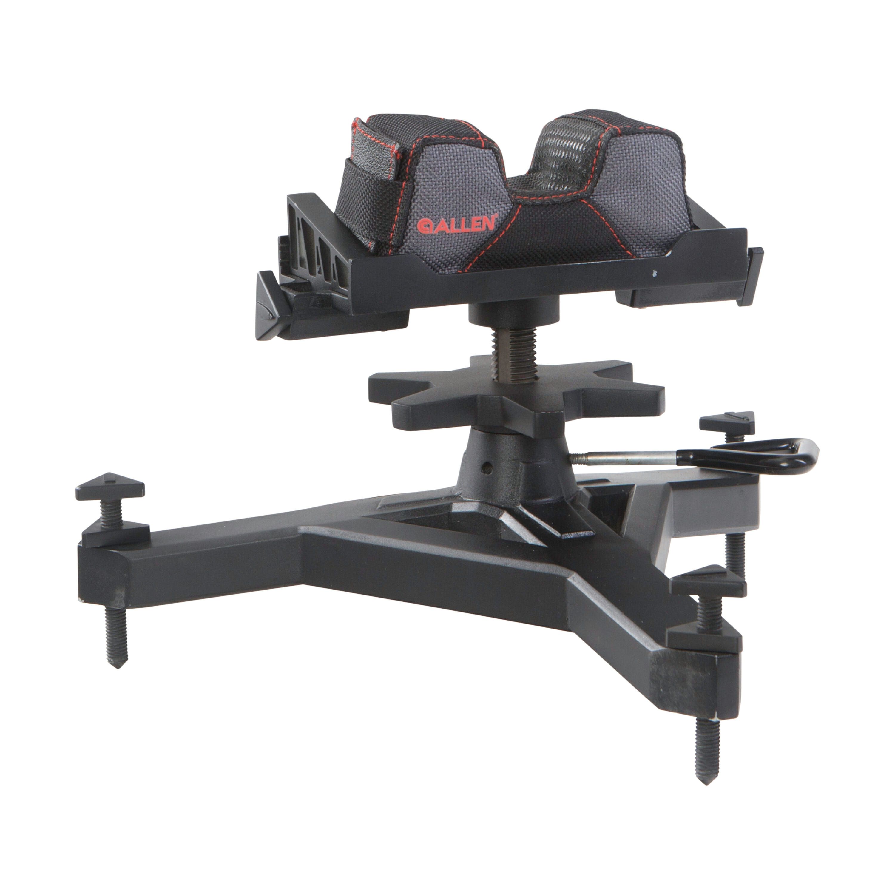 Ложемент Allen Citadel регулируемыйСтанок для пристрелки Allen Citadel Shooting Rest – обновленная модель ранее производимых приспособлений того же назначения. Конструктивно – это вертикальная опора с резьбой, ввинченная в центр базового узла – мощного 3-х опорного основания. В периферийной части каждой из опор имеются резьбы с регулировочными винтами, вращением которых горизонтируют базовый опорный узел.На вершине вертикальной резьбовой опоры смонтирована платформа, в которую плотно вложен мягкий упор для оружия с выемкой под цевье с нескользящей силиконовой текстурой. Подъем мягкого упора с опорной платформой регулируется большим регулировочным колесом, вращение которого обеспечит перемещение упора по высоте на 200 мм. Плавная точная и простая регулировка упора по высоте эффективна и удовлетворит самого взыскательного стрелка. Точная регулировка по высоте 3-х опорного основания (горизонтирование) дополнительно помогает стабилизировать позицию упора для стрельбы с необходимой точностью. Ручки регулировки положения упора делают настройку прицела еще более точной и легкой, материал упора не скользит и не боится высоких температур. Реализованные в станке технологии позволяют вести длительную устойчивую стрельбу.Технические характеристики ложемента Allen CitadelГабаритные размеры: 95x337x286 ммРегулировка в диапазоне: 20 смМягкая опора для цевья или ствола с силиконовыми вставкамиПрочное тяжелое основание в виде треногиТехнология Thermoblock NOMEX использованная в опорном мешке выдерживает нагрев до 400°F и самые жесткие нагрузки износа и разрываМасса: 2,4 кг