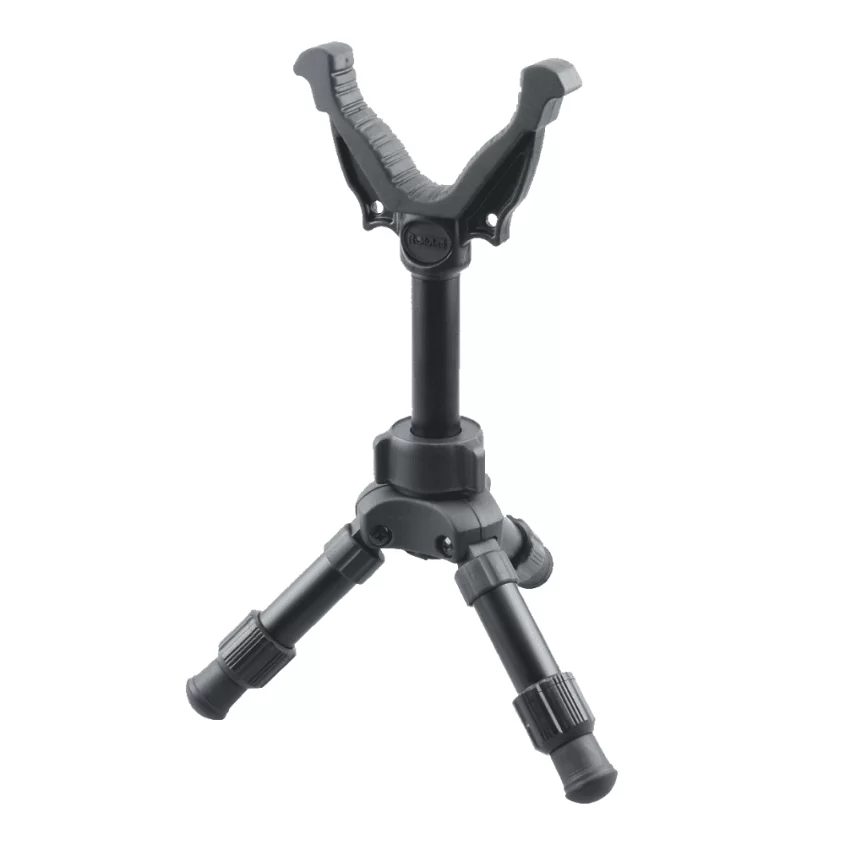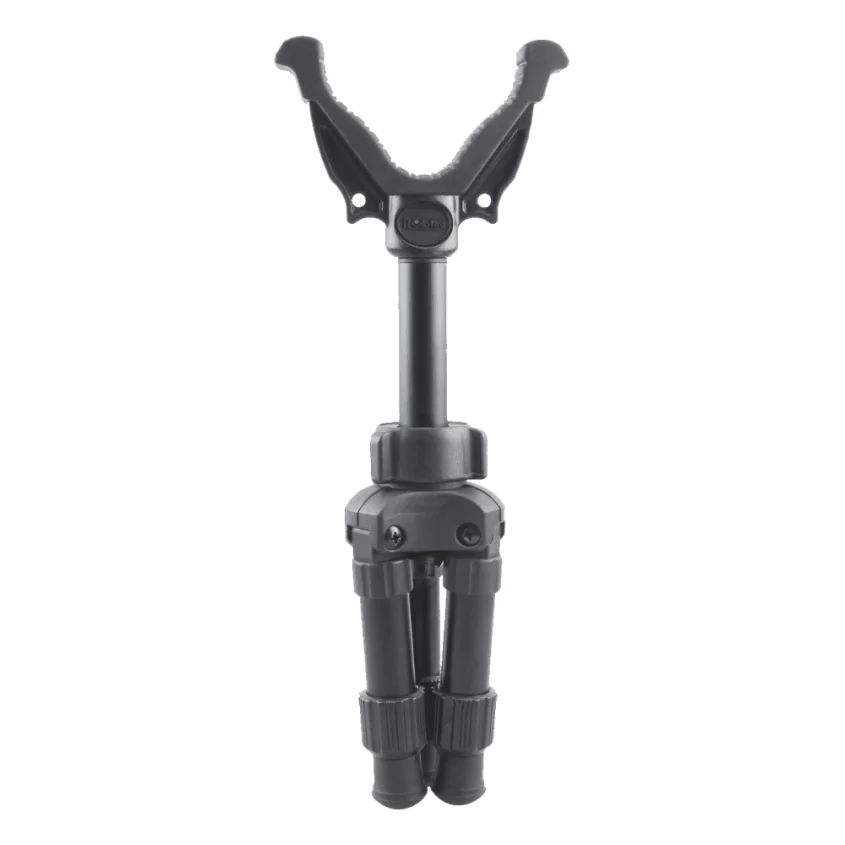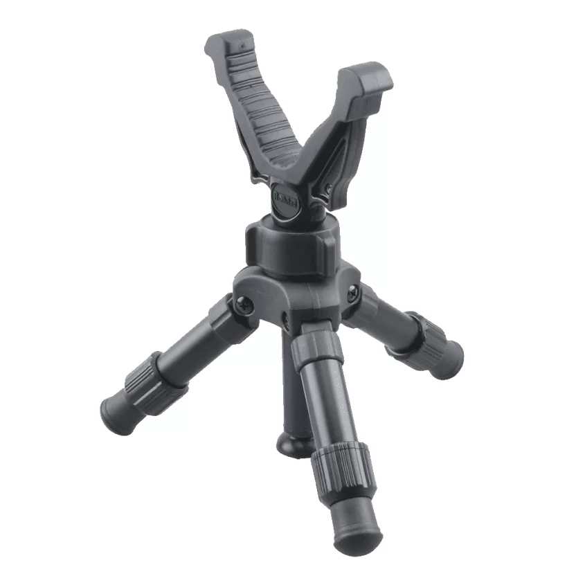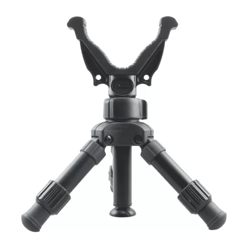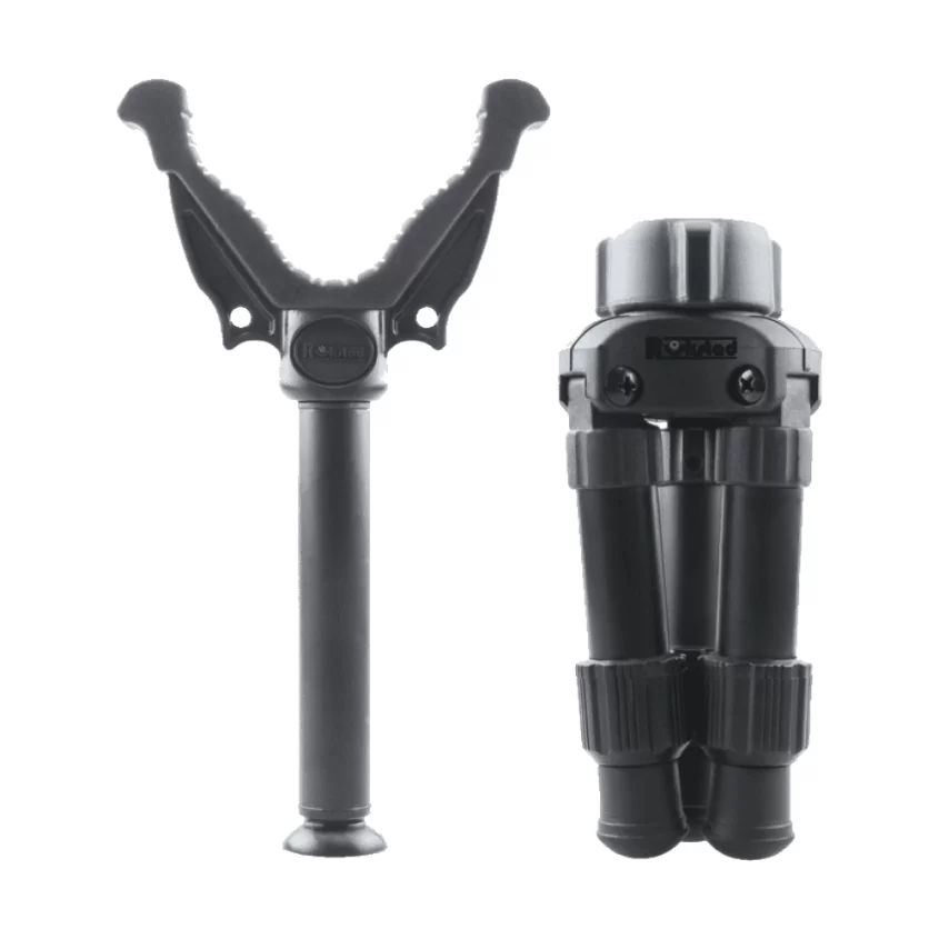 Поворотная оружейная сошка Vector Optics Rokstad ELP V – портативный раскладной трипод с выдвижными ножками, позволяющими плавно изменять высоту в диапазоне 15-24 см. Оснащена вращающейся на 360° V-образной вилкой с центральной трубкой, на торце которой имеется резиновая присоска. Стабилизирует перемещения ствола в момент прицеливания и нажатия на спусковой крючок, что значительно повышает точность и кучность выстрелов на расстоянии от 100 метров. Не царапает ложе оружия, выдерживает до 5 кг веса и отдачу крупного калибра, не ржавеет при воздействии влаги и агрессивных сред.