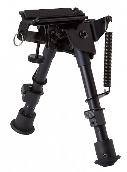 База сошек – цельная, прочная, поворачивающася ( угол поворота достаточно ограниченный). Крепятся сошки под цевьё за антабочный винт или за планку Picatinny. Идеально подходят для стрельбы лёжа. Длина ножек регулируется ступенчато от 152мм.( в сложенном виде) до 228мм.(в полностью разложенном виде). Каждая ножка состоит из 2-х секций. При выдвижении ножки до конца, она автоматически стопориться. Уникальная системаPosi-lockнадежно удерживающая ногу сошки от складывания.Резиновые наконечники на ножках сошки, дают стрелку дополнительное преимущество при стрельбе со скользких поверхностей.