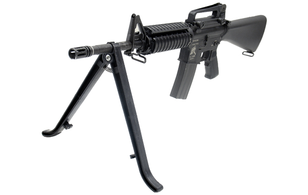 Это походные сошки для установки на ствол пневматического оружия диаметром от 18 мм до 23 мм. Сошки изготовлены из прочного, износостойкого, некорродирующего полиамида армированного кевларом марки Zytel(или проще – пластик ABS), благодаря чему имеют столь малый вес. Быстро отсоединяются и компактно складываются для транспортировки. Ножки сошек имеют скругленную форму на концах, рифленых для более устойчивого сцепления с поверхностью, не обрезиненные. Сошки нерегулируемые и имеют две высоты: в разложенном виде 254 мм и в сложенном 279 мм.