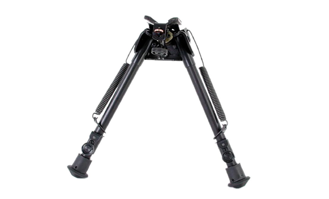 База сошек – цельная, прочная. Крепятся сошки под цевьё за антабочный винт или за ствол оружия (специальный адаптор в комплект не входит, а приобретается отдельно). Идеально подходят для стрельбы сидя или лёжа. Ножки со встроенными возвратными пружинами быстро и легко складываются. Длина ножек плавно регулируется от 230мм. до 330мм. Каждая ножка состоит из 2-х секций. Длину можно регулировать на любую высоту, с высокой точностью. Выдвинуть на нужную длину, зафиксировать стопорным кольцом. При необходимости сложить сошки нужно ослабить стопорное кольцо и они автоматически сложатся. При выдвижении ножки до конца, она автоматически стопориться. А при нажатии на кнопку стопорного кольца – автоматически складывается. Ножки сошек складываются вдоль цевья или ствола в одном направлении.