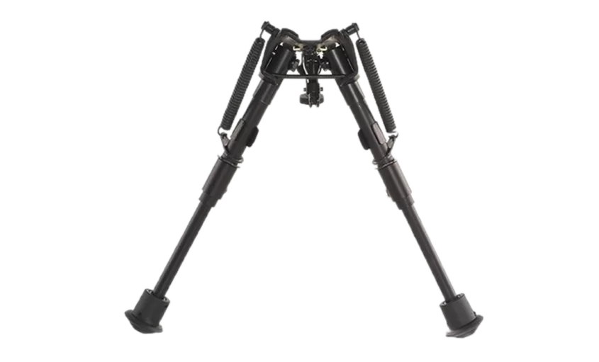 База сошек – цельная, прочная. Крепятся сошки под цевьё за антабочный винт или за ствол оружия (специальный адаптор в комплект не входит, а приобретается отдельно). Идеально подходят для стрельбы сидя или лёжа. Ножки со встроенными возвратными пружинами быстро и легко складываются. Длина ножек плавно регулируется от 150мм. до 230мм. Каждая ножка состоит из 2-х секций. Длину можно регулировать на любую высоту, с высокой точностью. Выдвинуть на нужную длину, зафиксировать стопорным кольцом. При необходимости сложить сошки нужно ослабить стопорное кольцо и они автоматически сложатся. При выдвижении ножки до конца, она автоматически стопориться. А при нажатии на кнопку стопорного кольца – автоматически складывается. Ножки сошек складываются вдоль цевья или ствола в одном направлении.