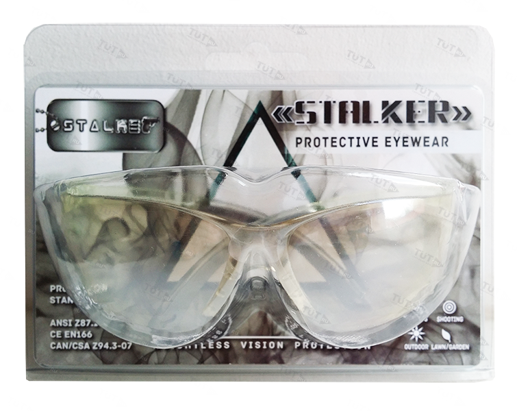 Очки стрелковые "Stalker" защитные, цвет - зеркально-серые, материал - поликарбонат, светопропускаемость 75%, блистер.