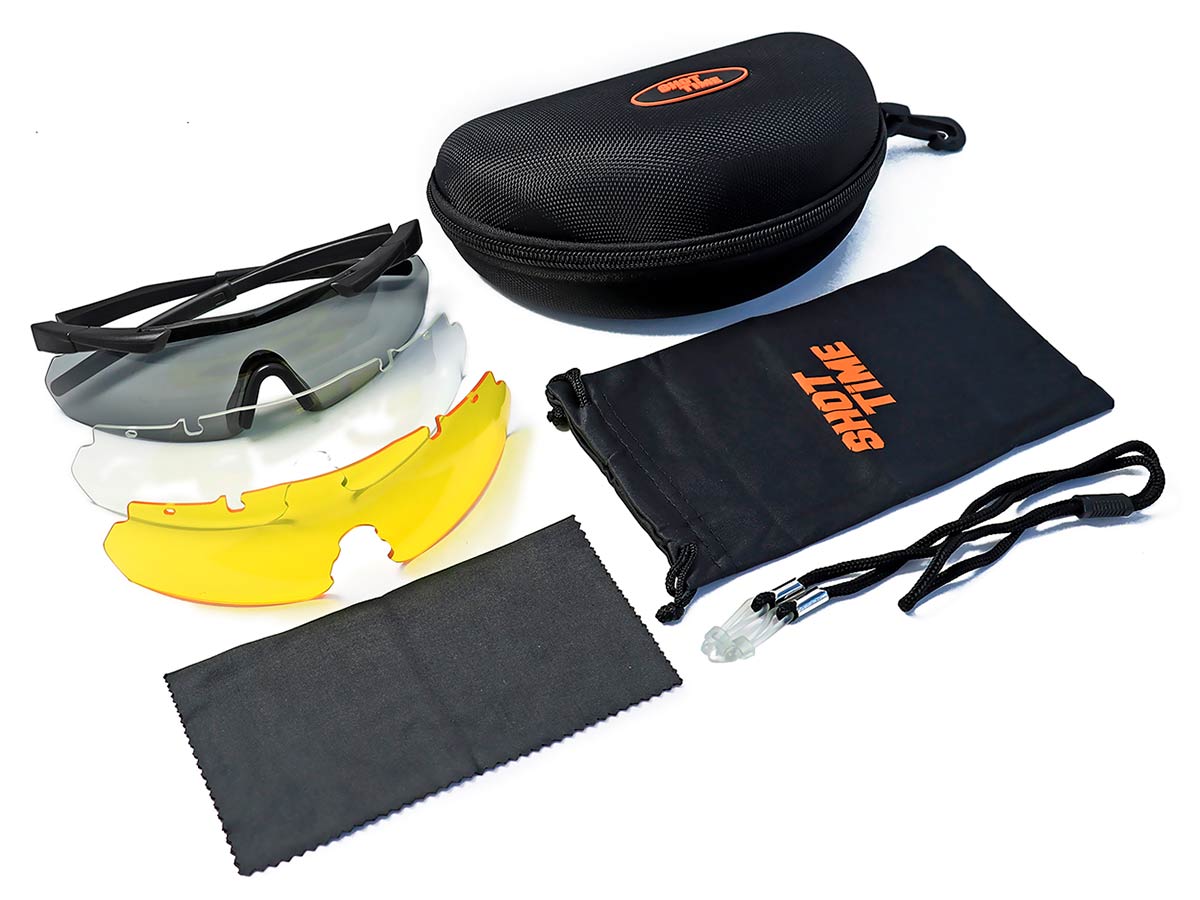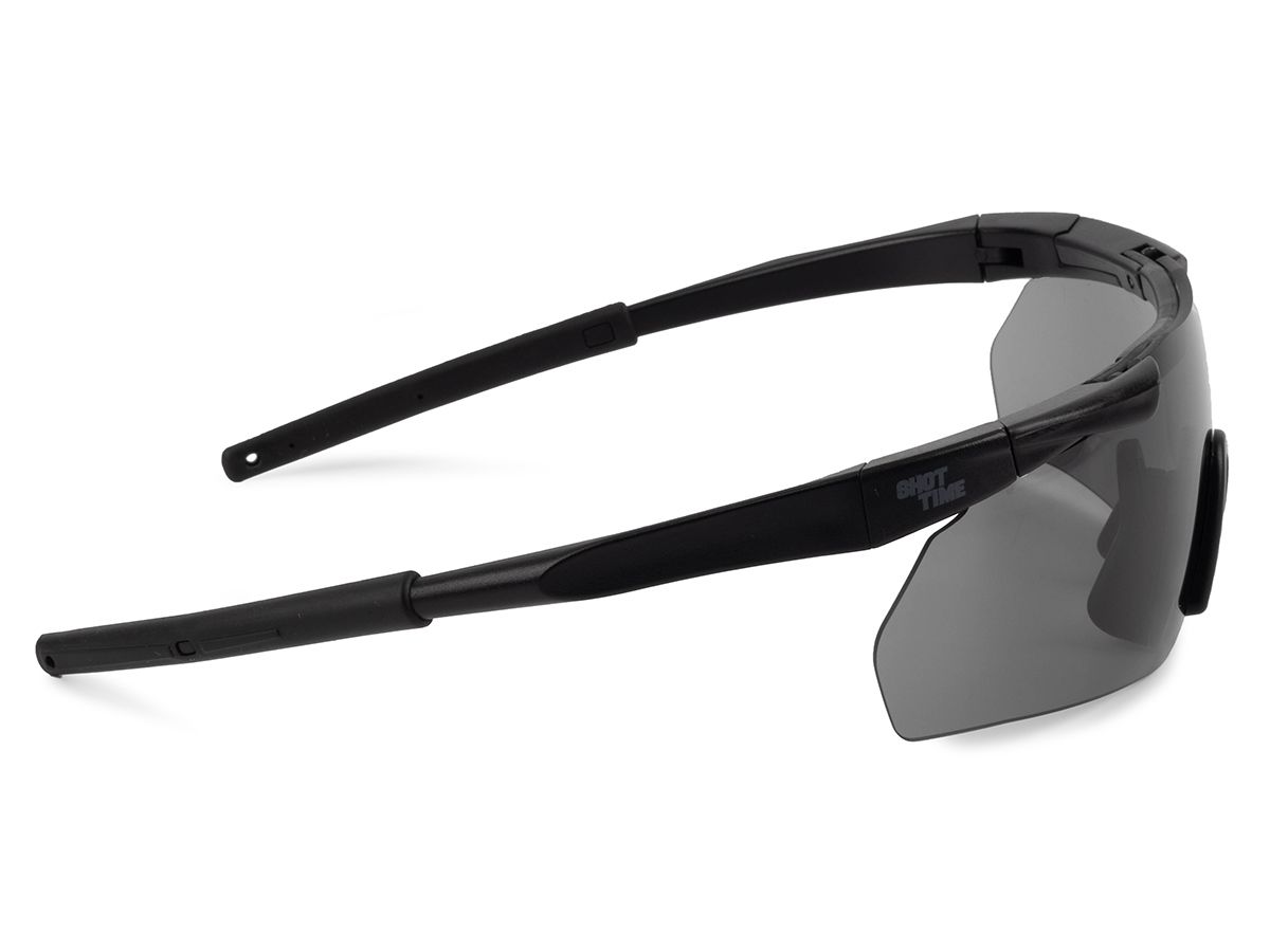 Защитные стрелковые очки ShotTime Lynx, комплект с 3 линзами и чехлом, чёрныеКомплект защитных стрелковых очков ShotTime Lynx с 3-мя вариантами линз из поликарбоната: прозрачные, жёлтые, серые. Прозрачные линзы подходят для работы в условиях нормального освещения. Очки с такими линзами не искажают зрительное восприятие и не утомляют глаза. Жёлтые линзы улучшают контраст видимого изображения. В них яркий свет становится более тусклым, а при недостаточном освещении «картинка» становится более контрастной. Серые линзы обеспечивают хорошую цветопередачу и отлично защищают глаза от умеренно яркого солнечного света, сохраняя комфорт при работе в тени.Весь комплект поставляется с чехлом EVA для переноски и хранения.Особенности очков ShotTime Lynx:Оправа: поликарбонатЛинзы: поликарбонат 2ммЦвета линз: серый, прозрачный, желтыйПереносица: резина+пластикБазовый антифогЗащита от ультрафиолета UV400Комплектация:ОчкиЧехол EVAДополнительный мягкий тканевый чехолТряпочка для линзСъёмный шнур для фиксации очков на голове и ношения на шее