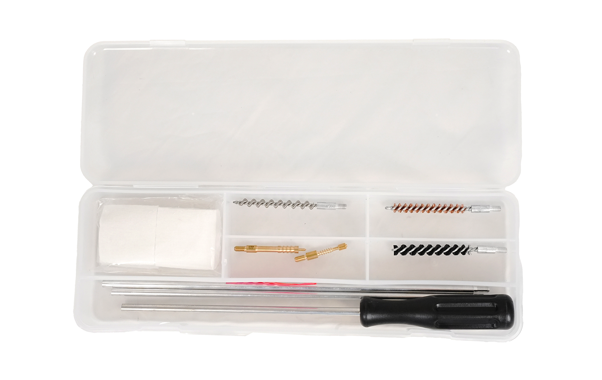 Набор аксессуаров, включающий все, что необходимо для качественного ухода за оружием калибров .223 REM, 5.45, .22LR и подобных. Подходит для чистки и обслуживания спортивных и охотничьих карабинов, может использоваться и дома, и в полевых условиях (на охоте или соревнованиях). Благодаря высокому качеству материалов и продуманной комплектации восполняет все потребности владельцев оружия.
