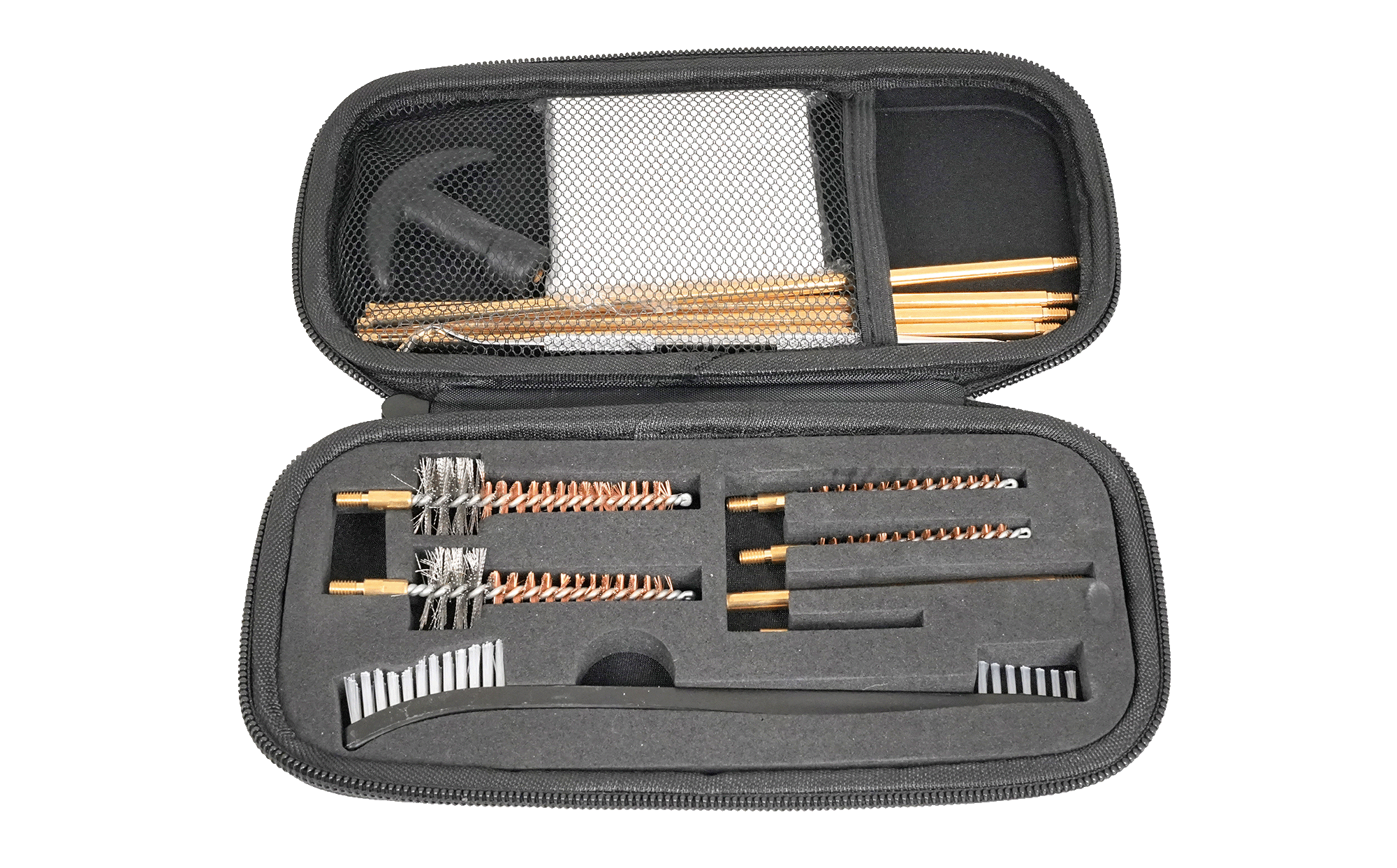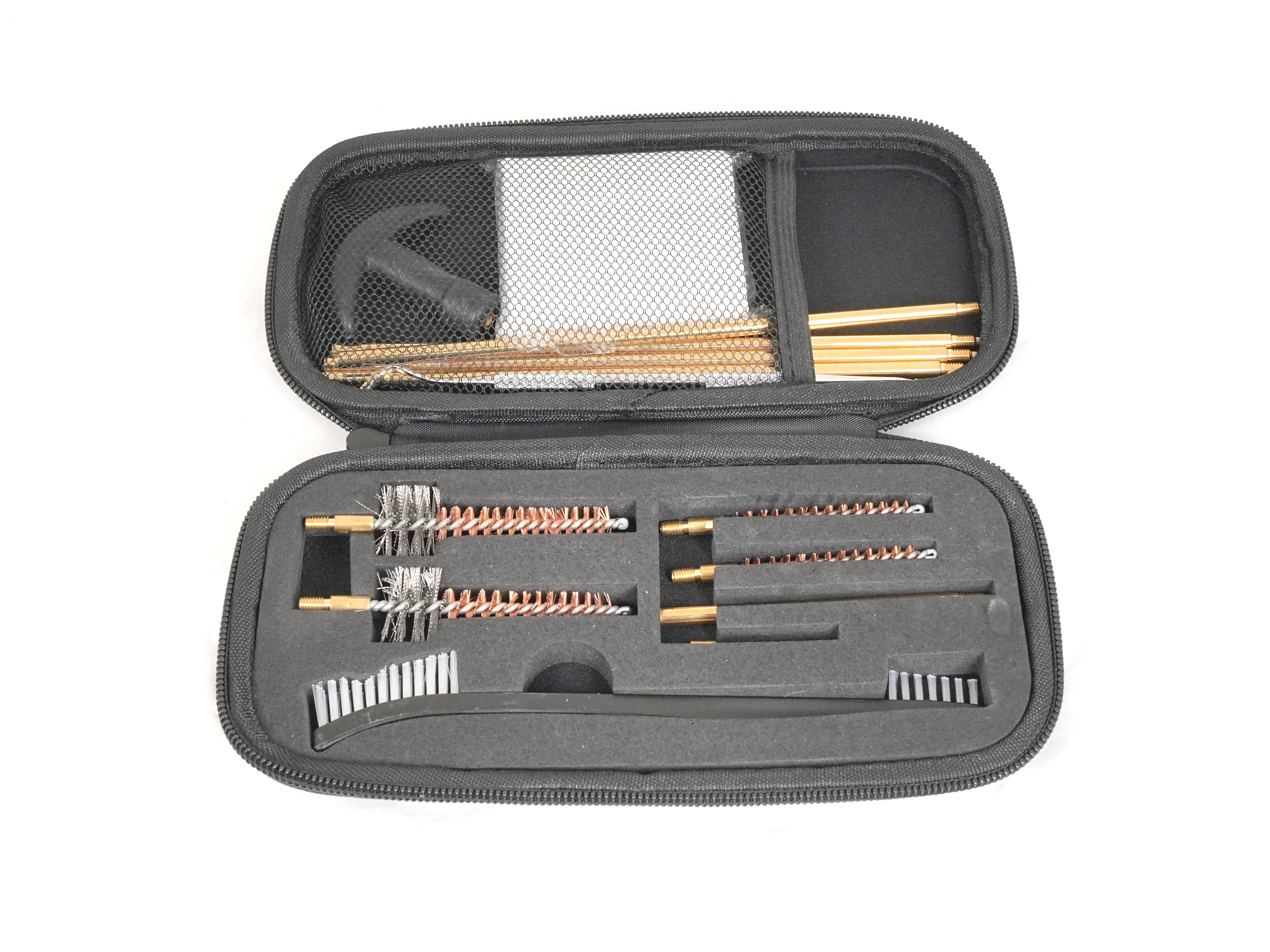 Большой набор аксессуаров, предназначенных для ухода за оружием калибра .223 Rem на AR-платформе. Подойдет он и для калибра 5.45, и для калибров .22 группы, в том числе для .22WMR и .22LR. Благодаря этому комплекту качественная чистка спортивных, охотничьих, пневматических винтовок не отнимет много времени и усилий, а выполнить ее можно будет как дома, так и в полевых условиях. Продуманная комплектация позволяет подобрать оптимальный предмет для эффективного устранения загрязнений любого типа, будь то нагар, следы свинца или пыль. Длительный срок службы оружия будет гарантирован!