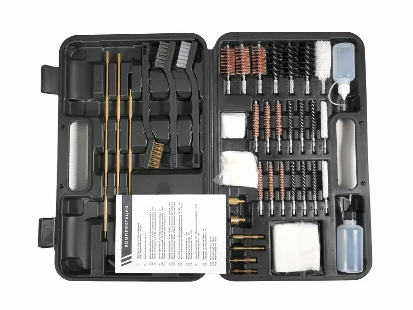 Для базовой механической чистки предусмотрены три универсальные щётки. Дополнительно для каждого калибра включены специализированные ершики.