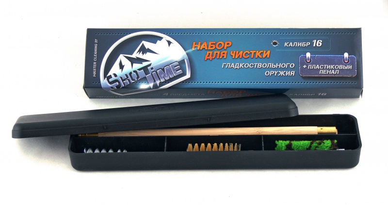 Набор для чистки ShotTime кал.16 (деревянный шомпол, 3 ерша) в пенале