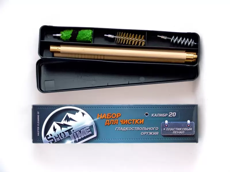 Набор для чистки ShotTime кал.20 (деревянный шомпол, 3 ерша) в пенале