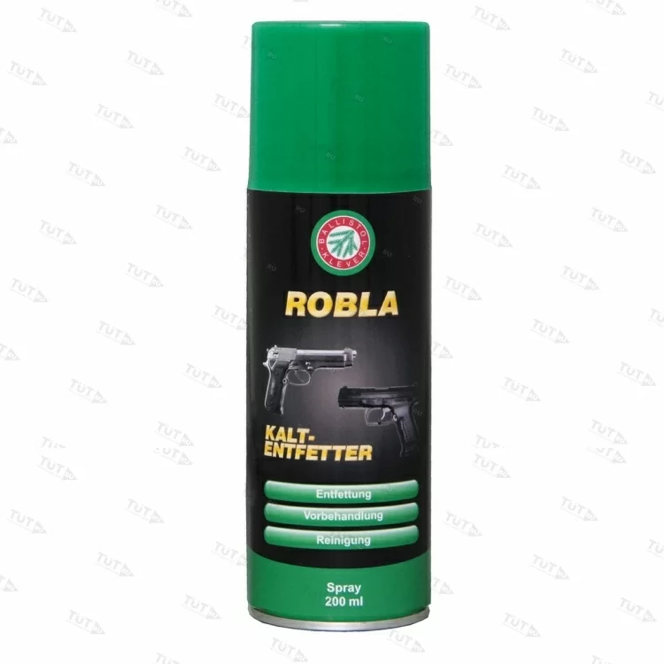 Спрей распыляется на очищаемую поверхность, после чего выжидается некоторое время, необходимое составу для растворения загрязнений. Для удаления состава нужно дать ему стечь с поверхности, при обезжиривании поверхности или снятия стойкого загрязнения производится повторное напыление. Особенности Ballistol Robla Kaltentfetter заключаются: