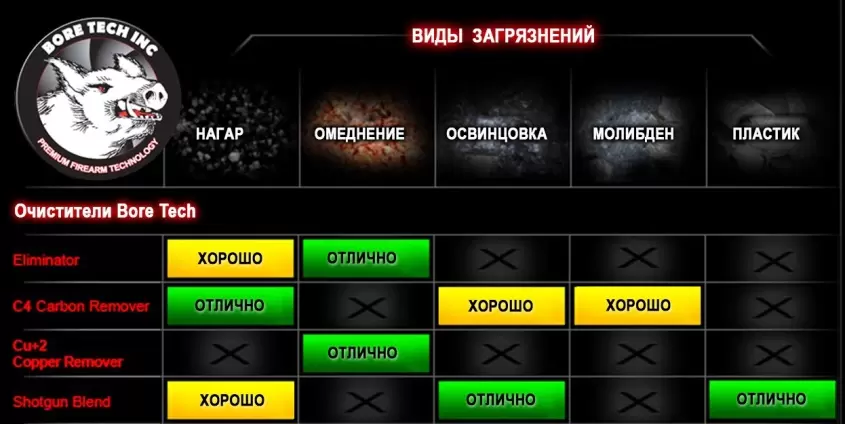 В результате шестилетних интенсивных исследований компанией Bore Tech был создан революционный очиститель ELIMINATOR. Это инновационное средство на водной основе соответствует самым жестким требованиям пользователей-оружейников и экологии.