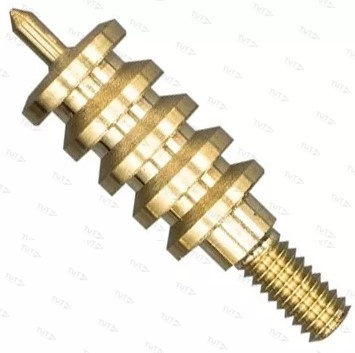 Вишер .40,зготовленный из цельной латуни, выполнен с одним остроконечным зубцом – один из аксессуаров уникального размерного ряда разнокалиберных вишеров от Shooter's Choice , специально созданный для чистки канала ствола оружия калибров .40.