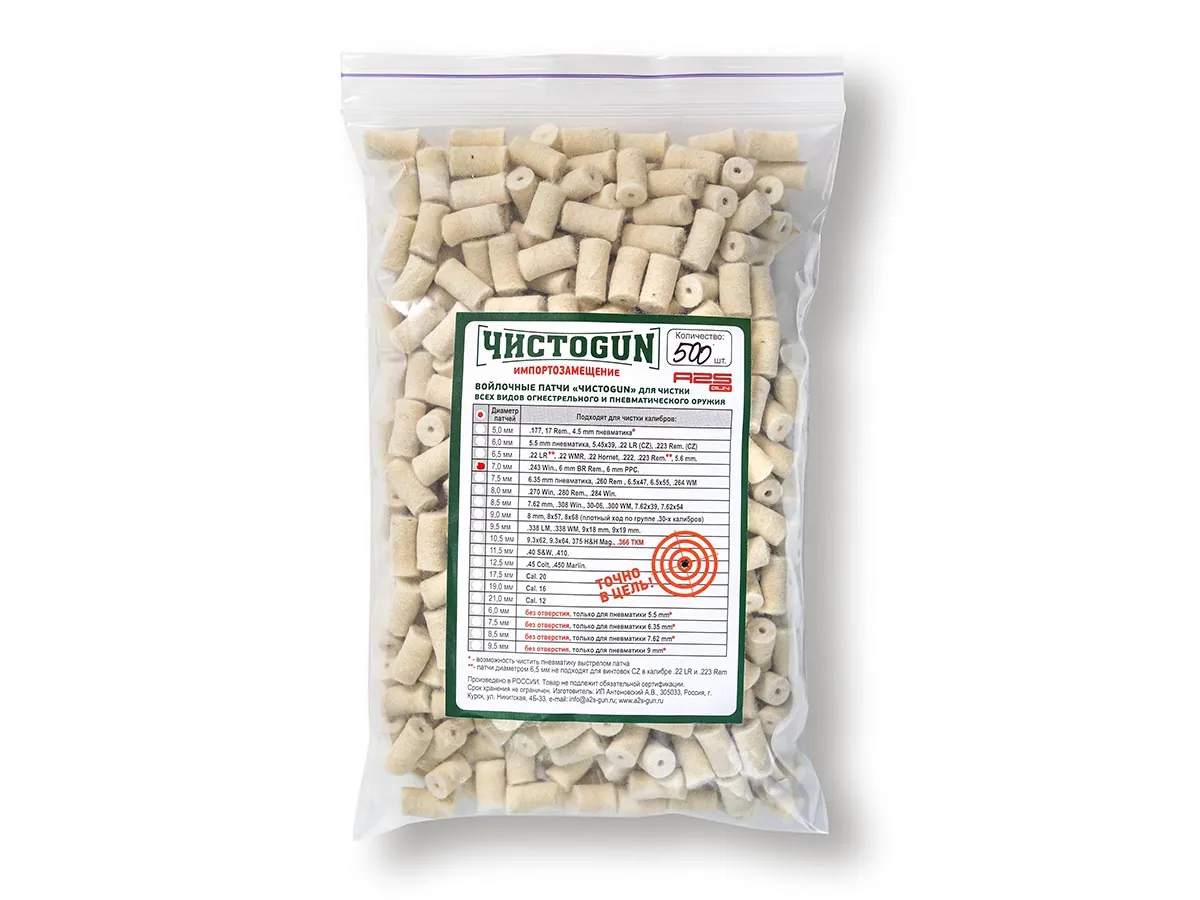 Патчи, фетровые или войлочные тампоны следует подбирать под калибр своего оружия. В карточке каждого товара имеется подробное описание каждой модели, ее впитывающие и абсорбирующие свойства, характеристики и назначение. В наличии наборы от нескольких штук до 500 и более. Также указан калибр, для которого подходят изделия. Рекомендуем обратиться за помощью в отдел поддержки клиентов по бесплатному в России номеру + 7(800) 5555-798. Опытные стрелки подберут лучшее решение именно для вашей ситуации, с учетом требуемых задач и оружия.