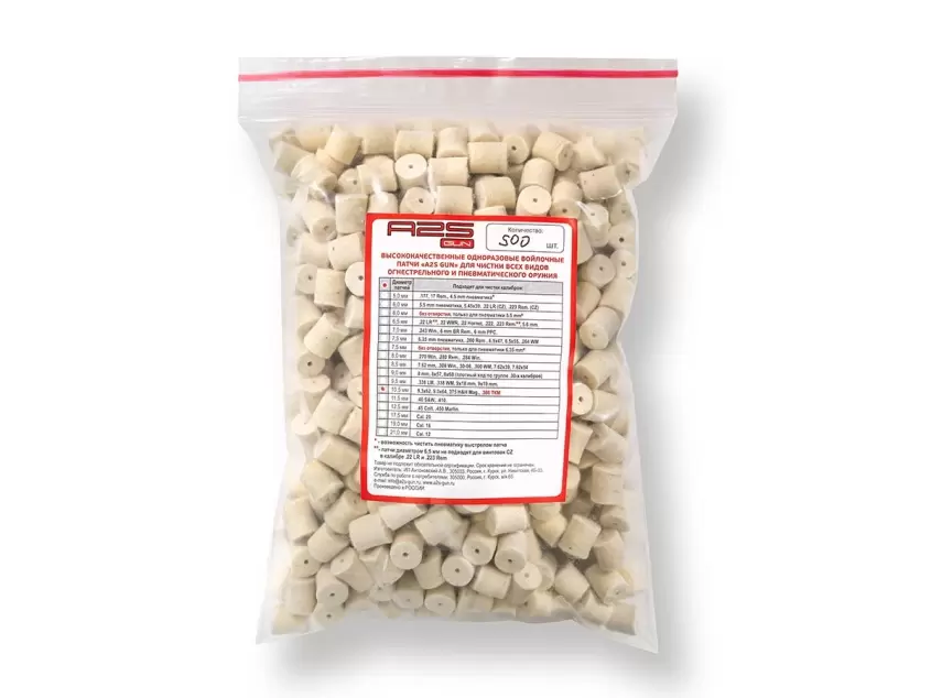 Патчи изготовлены из российского войлока и имеют высокие чистящие и абсорбирующие характеристики. Для проведения чистки патч накручивается на адаптер-иголку, за счет этого патч надежно фиксируется на шомполе. Благодаря высокоточному изготовлению заданного диаметра, чистка ствола патчами производится с одинаковым усилием.