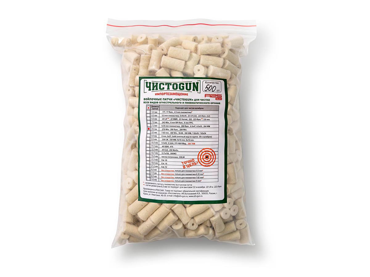 Войлочные патчи ЧИСТОGUN, диаметр 8.0 мм, 500шт./уп. используются для чистки нарезного оружия калибра .280 Rem., .284 Win., .270 Win. Патчи изготовлены из российского войлока и имеют высокие чистящие и абсорбирующие характеристики. Для проведения чистки патч накручивается на адаптер-иголку, за счет этого патч надежно фиксируется на шомполе. Благодаря высокоточному изготовлению заданного диаметра, чистка ствола патчами производится с одинаковым усилием. Войлочные патчи подходят для проведения чистки от нагара, медного или свинцового налета, а также для полировки, нанесения масел, сушки канала ствола.